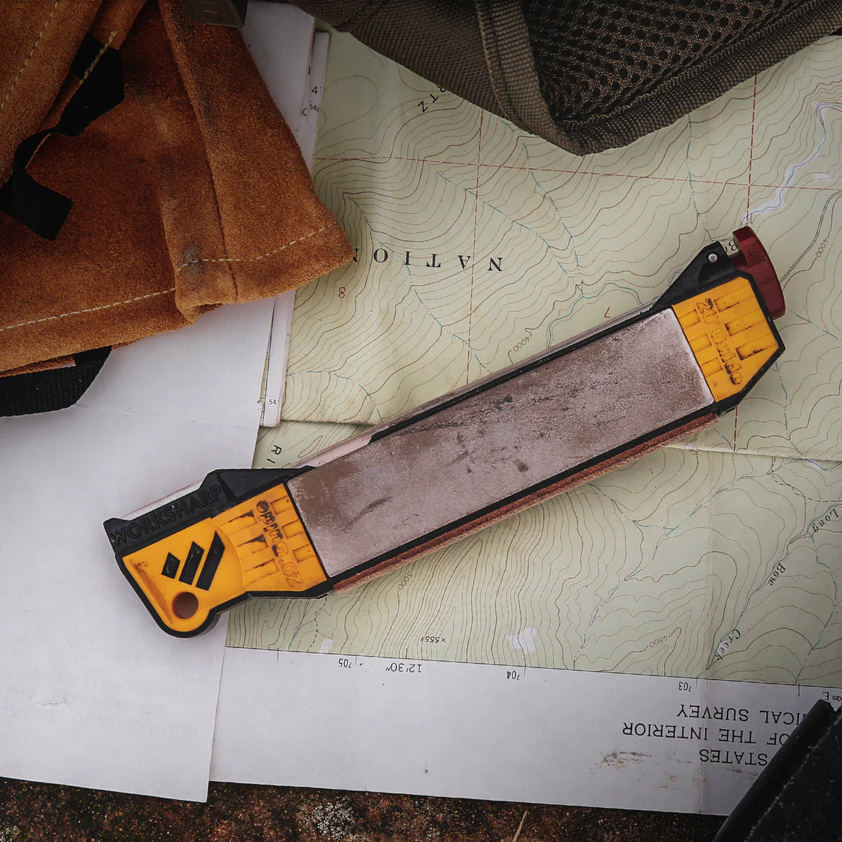 The ultimate companion for those seeking razor-sharp edges in the great outdoors. Engineered with precision and packed with features, this sharpener ensures optimal blade performance wherever you roam. Angle guides create a consistent 20° edge on coarse and fine grit diamond plates, with 25° guides for fine ceramic honing. The leather strop swiftly restores edges to perfection. Need to sharpen fish hooks? Our specialized ceramic rod has you covered. Diamond plates, secured by magnets, allow sharpening of various tools, even off-tool, with no compromise. A discreet storage cavity houses a broadhead wrench. Dominate every adventure with the Guided Field Sharpener at your side.
